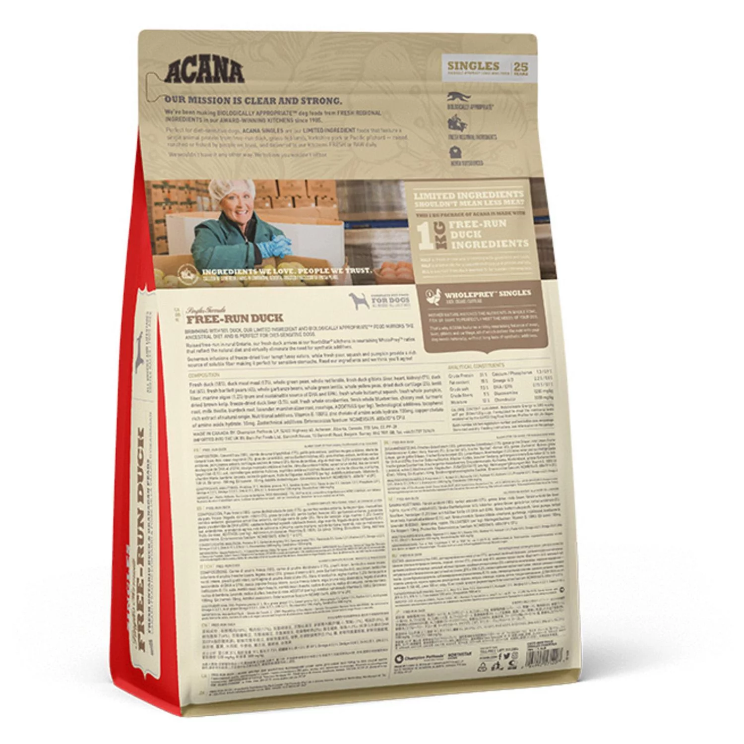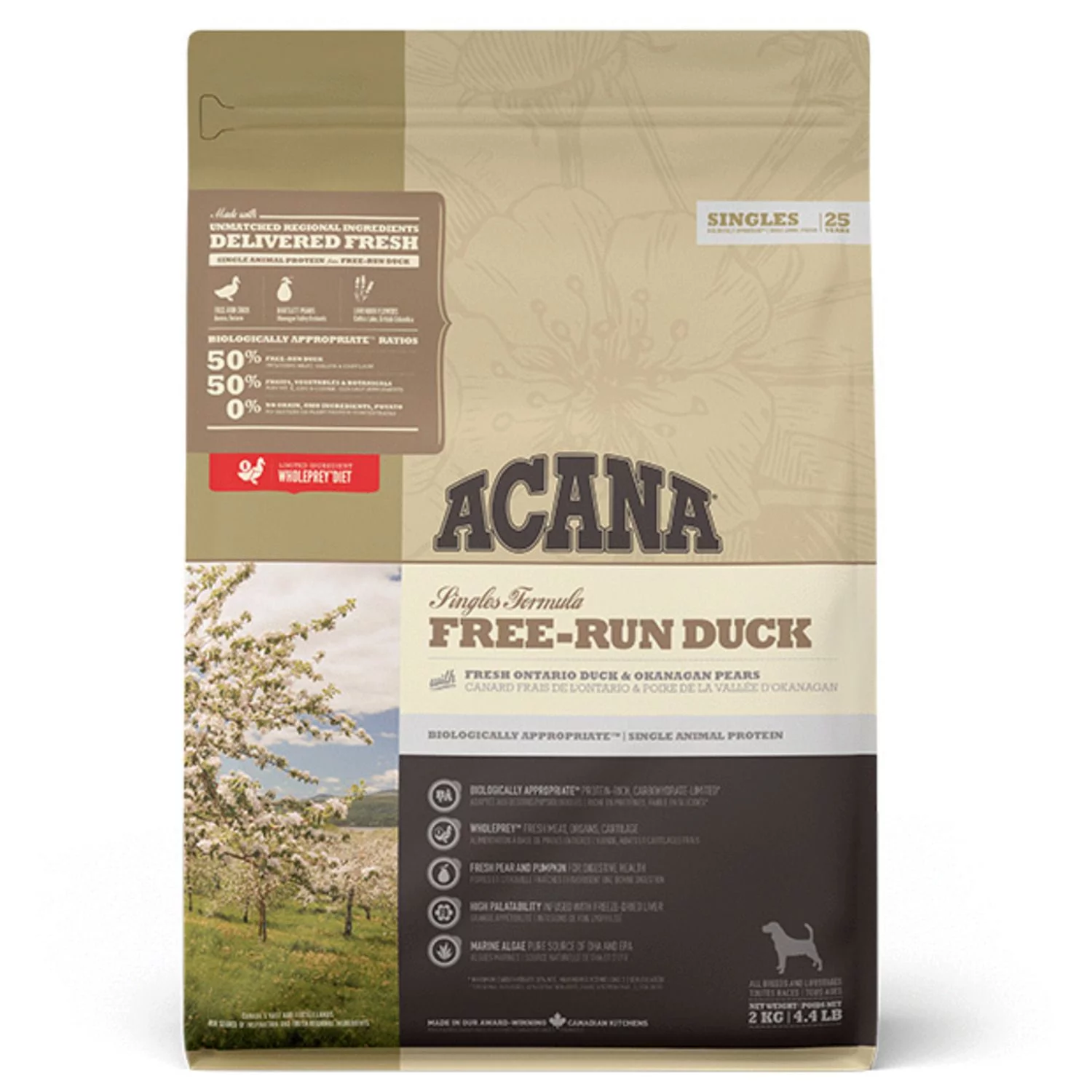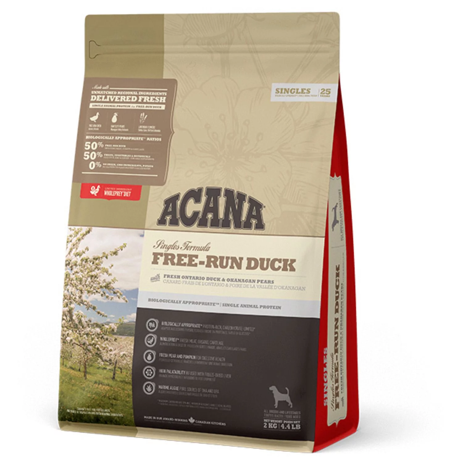 De voeding van ACANA is volgens het Biologically Appropriate-principe bereid en zit vol waardevolle voedingsstoffen voor een perfecte voeding van honden van alle rassen en leeftijden. ACANA Free-Run bestaat uit 60% dierlijke ingrediënten en 40% plantaardige ingrediënten. Rijk aan eiwitten van 1 soort vlees, zonder erwten of plantaardige eiwitisolaten. Ideaal dus voor honden met een voedselallergie en een gevoelige maag.