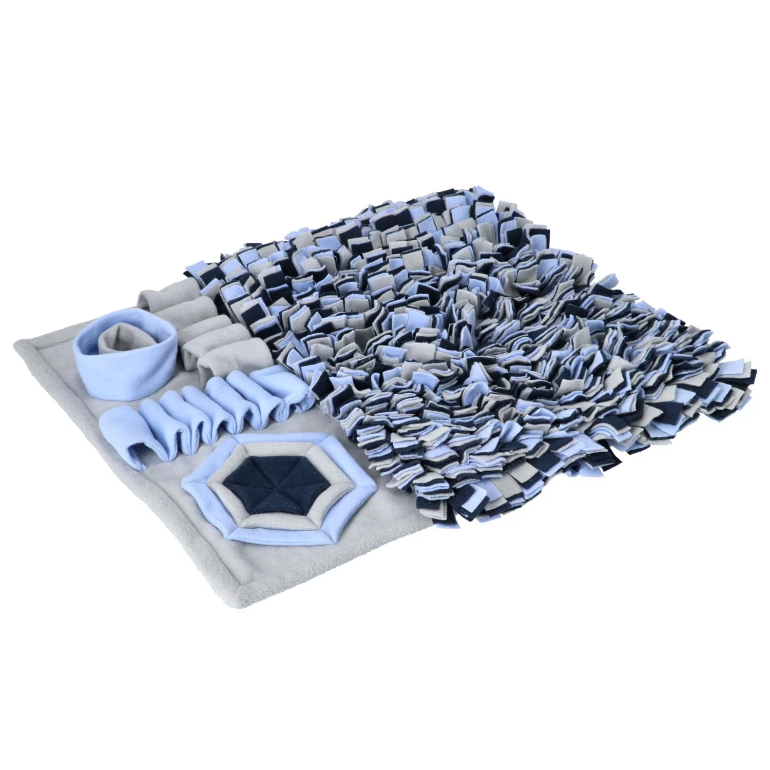 Deze snuffelmat voorkomt verveling bij hond of kat en moedigt je huisdier aan om te experimenteren en te leren. Verstop brokjes of de favoriete snack van je dier tussen de fleecerepen. Vervolgens moet je viervoeter moeite doen om het lekkers te vinden, verstopt in de mat.