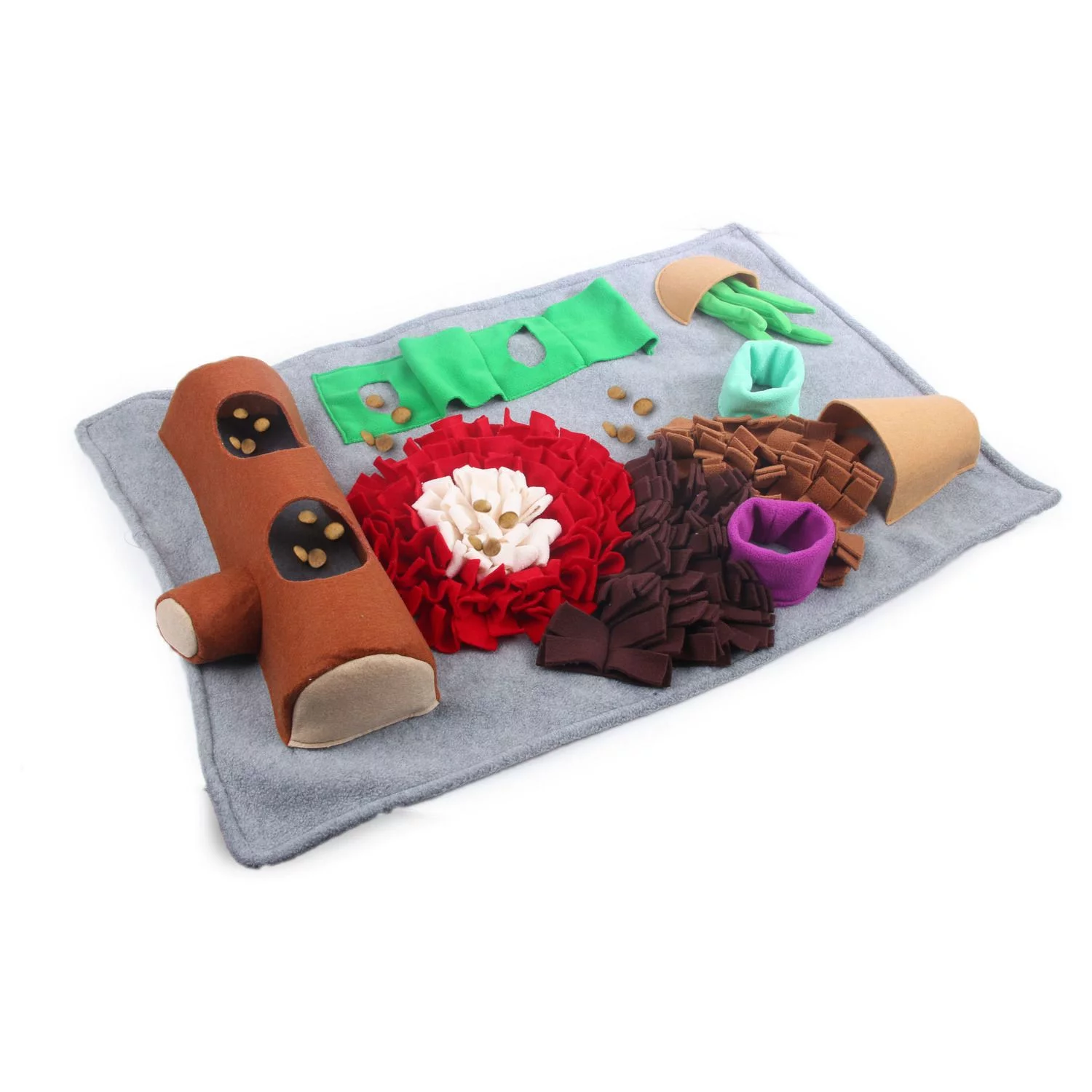 Een snuffelmat voorkomt verveling bij je dier en moedigt je huisdier aan om te experimenteren en te leren. Verstop brokjes of de favoriete snack van je dier tussen de fleecerepen en andere verstopplekken. Vervolgens moet je viervoeter moeite doen om het lekkers te vinden. Je kan de snuffelmat gebruiken als traktatie, maar ook de normale maaltijd kan erin verstopt worden. Ruim de snuffelmat op wanneer het spel is afgelopen, zo blijft hij spannend voor je dier.