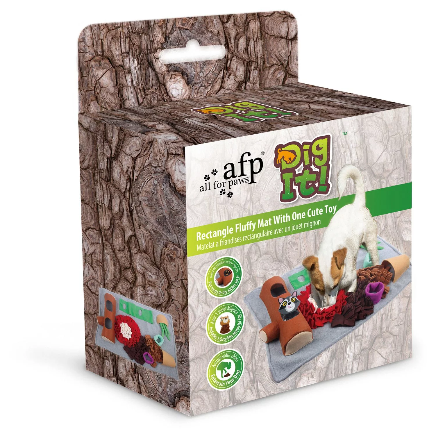Om je dier meer mentale (en fysieke) uitdaging te geven, kan je ervoor kiezen om zijn voer of snoepjes niet in een voerbak te geven, maar in een snuffelmat. Met de Snuffelmat met Speeltje van All For Paws wordt je hond, kat of konijn gestimuleerd om actief te werken voor zijn eten. De snuffelmat wordt geleverd inclusief een leuk speeltje.