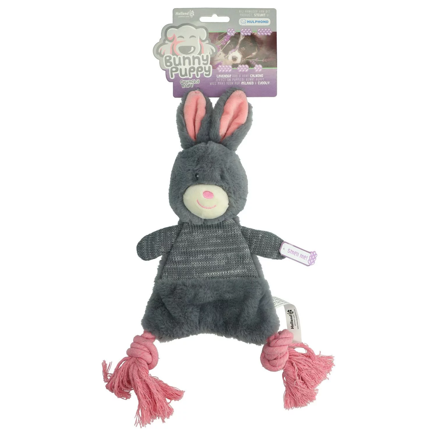 Een puppy krijgt te maken met veel indrukken in zijn jonge leventje. Andere dieren en mensen op straat, auto’s en fietsers, kinderen en nog veel meer. Het is belangrijk dat je pup ook af en toe een rustmoment krijgt, om zich weer op te kunnen laden en voor te bereiden op de volgende dag. Met het speelgoed van Bunny Puppy breng je jouw pup tot rust. Deze schattige speeltjes zijn namelijk verrijkt met lavendel voor een kalmerend effect.
