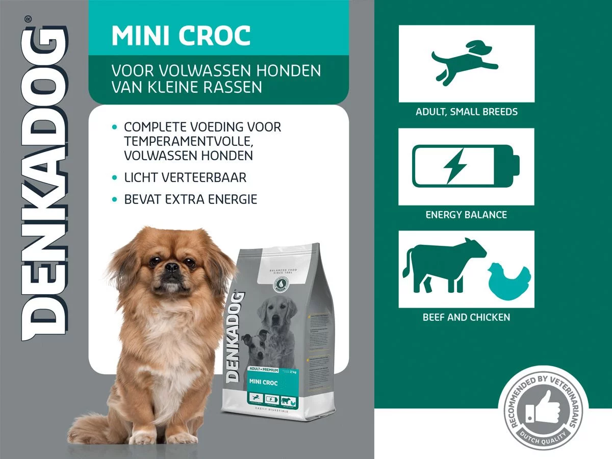 Denkadog Mini Croc helpt kleine rassen met deze extra energie, door een hogere voedingswaarde per brokje.