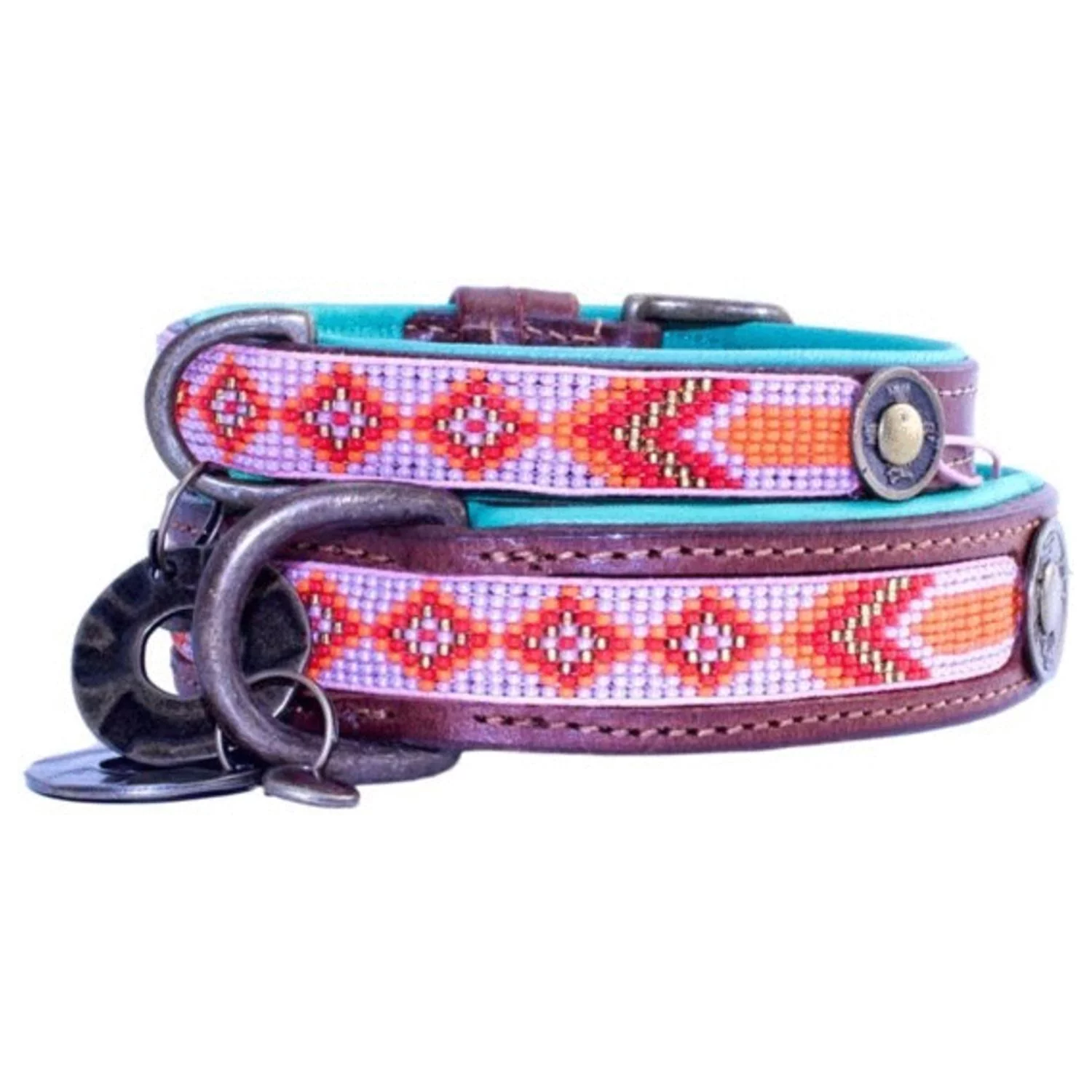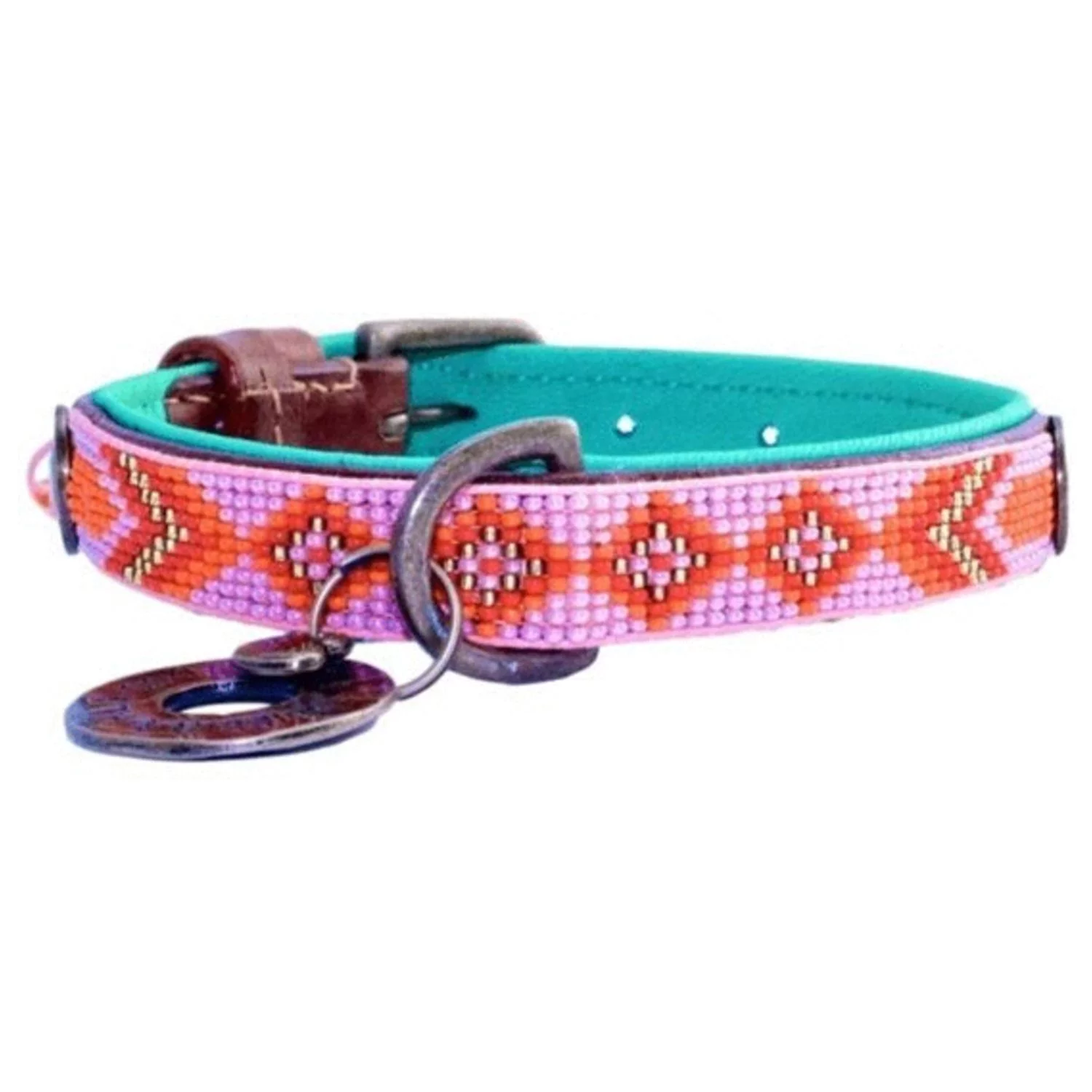 Wanneer je op pad gaat met je hond, wil je er natuurlijk wel flitsend uitzien. DWAM heeft een assortiment met prachtige riemen en halsbanden waarmee je hond er altijd stijlvol bij loopt. De Sweet Mae van Dog With A Mission is een handgemaakte, oersterke halsband voor je viervoeter. De Sweet Mae is gemaakt van leer met in combinatie met prachtige roze/oranje kralen. De halsband wordt afgemaakt met een bedeltje.