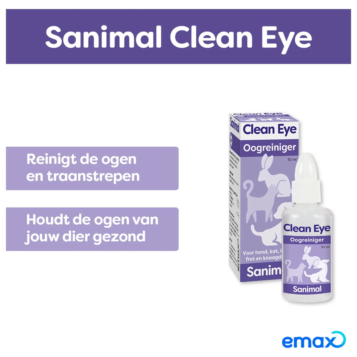 Clean Eye oogreiniger is een vloeistof welke speciaal is ontwikkeld voor het reinigen van ogen en traanstrepen van alle gezelschapsdieren vanaf 3 weken oud. De vloeistof kan rechtstreeks in de ogen worden gedruppeld.