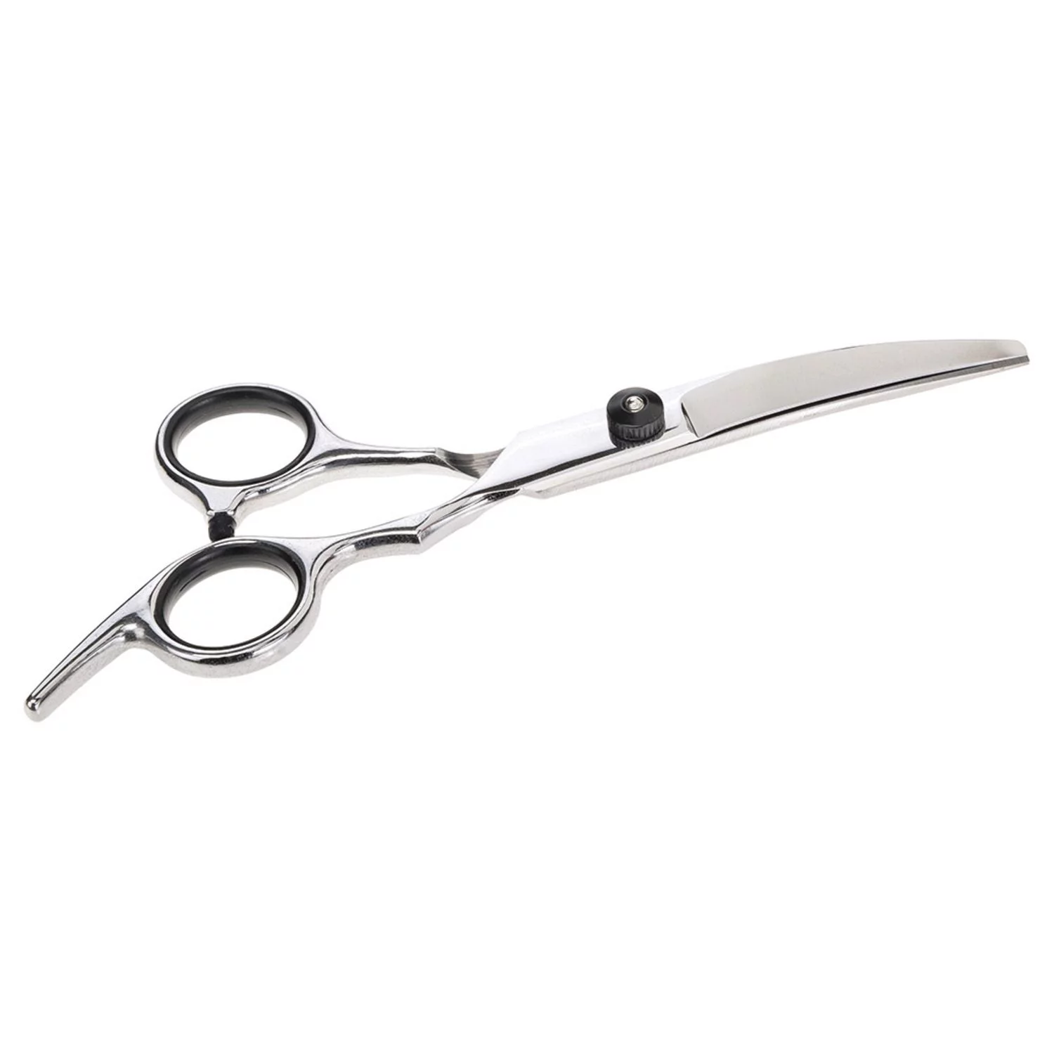 De gebogen schaar is gemaakt van sterk roestvrijstaal. Dankzij het ergonomische handvat met rubber ligt de schaar prettig in de hand. Door de afgeronde hoeken zitten er geen scherpe punten aan de schaar. Zo kan je dus aan de slag zonder dat je de huid van je dier irriteert.