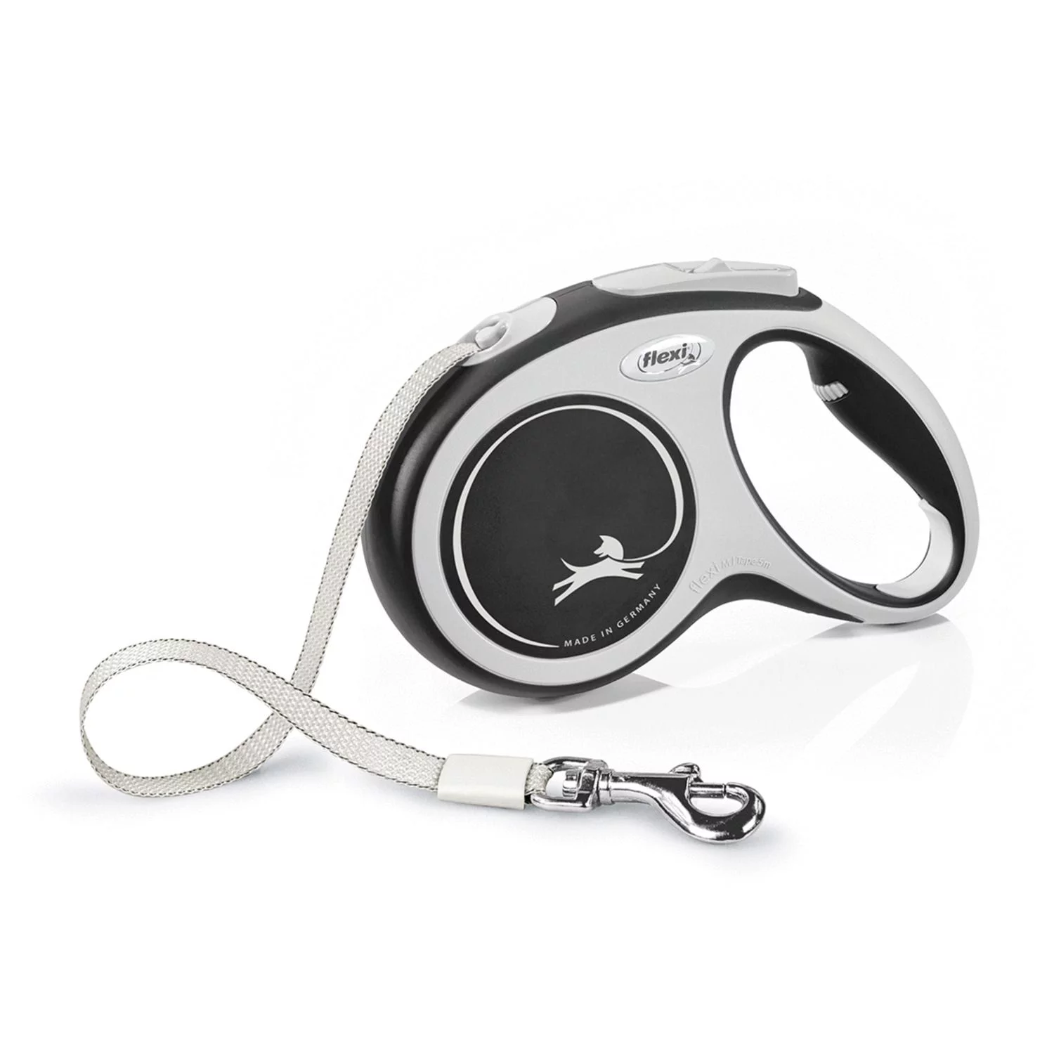 Bij Flexi kan je kiezen tussen lijnen met een koord en lijnen met tape. Het is een persoonlijke voorkeur welke variant je het fijnst vindt. In principe zijn beide soorten even sterk en veilig om te gebruiken. De New Comfort Tape bevat een tape.