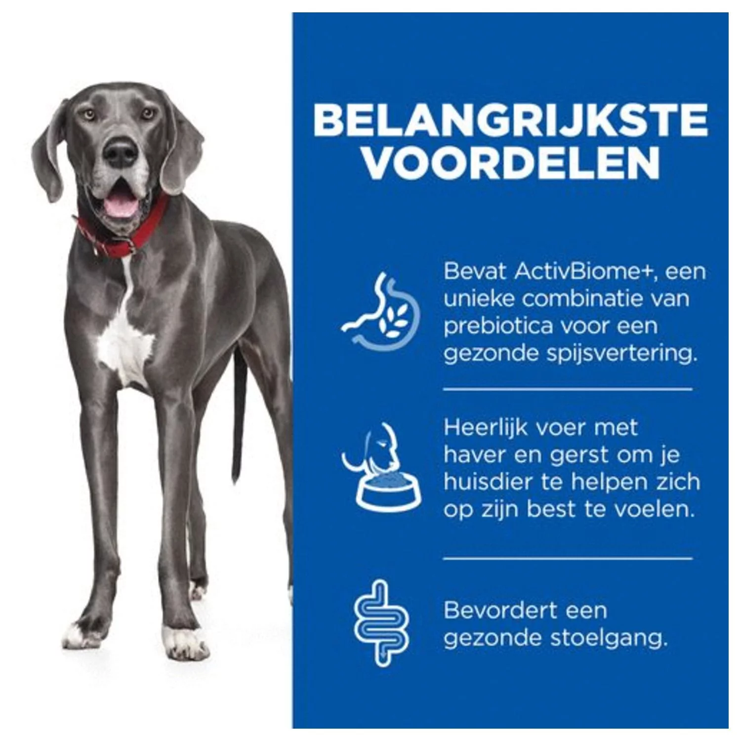 Als je darmen op hol zijn, voel je je al gauw niet lekker. Door middel van voeding kan je deze problemen goed onder controle krijgen, ook bij je hond. Hill’s Science Plan Perfect Digestion Large Adult zijn droge hondenbrokken die zorgen voor een optimale spijsvertering en een gezond microbioom.