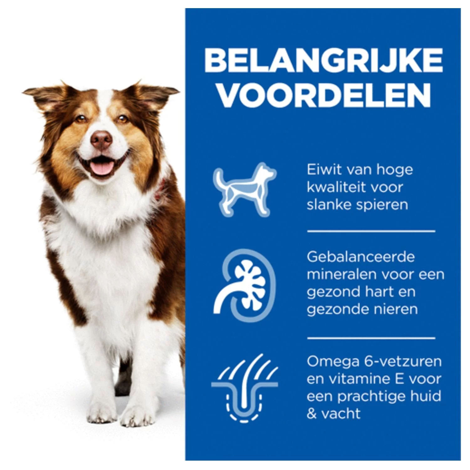 Wanneer jouw hond iets ouder wordt, maar zich nog steeds in de bloei van zijn leven bevindt, is het belangrijk dat hij brokken eet die passen bij zijn behoeftes. Hill’s Science Plan Mature Kip zijn droge hondenbrokken voor gezonde oudere honden. Gemaakt met hoogwaardige, licht verteerbare ingrediënten.