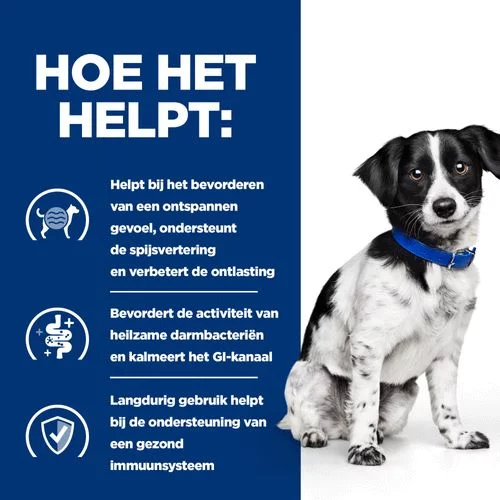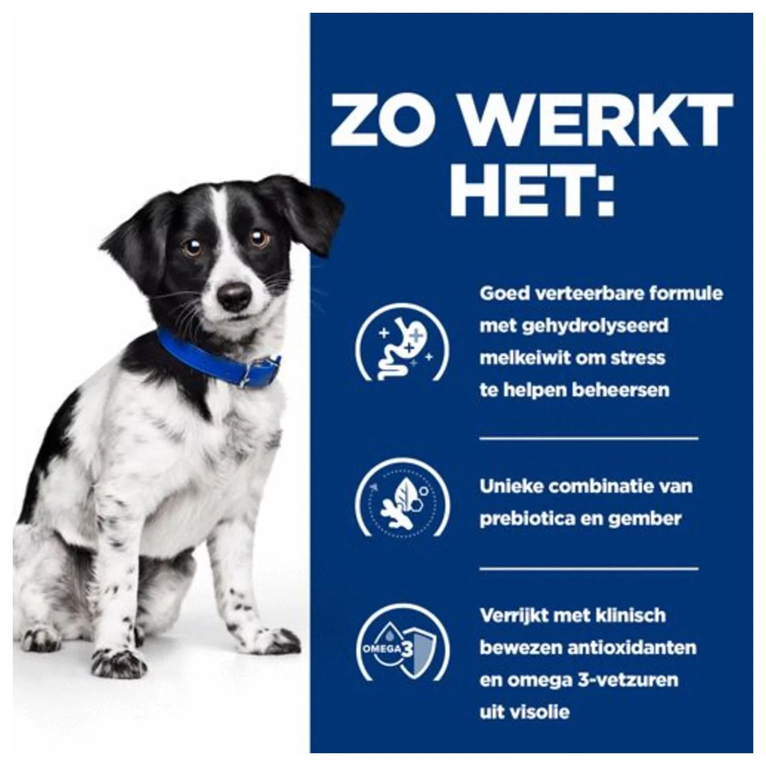 Hill’s voedingsdeskundigen en dierenartsen ontwikkelden Hill’s Prescription Diet i/d Stress Hondenvoer (droogvoer) samengesteld om stressgerelateerd gedrag te helpen beheersen, waaronder spijsverteringsproblemen bij honden tot 14 kg. Dit droogvoer is gemaakt met kip, voor een onweerstaanbare smaak waar je hond dol op zal zijn.