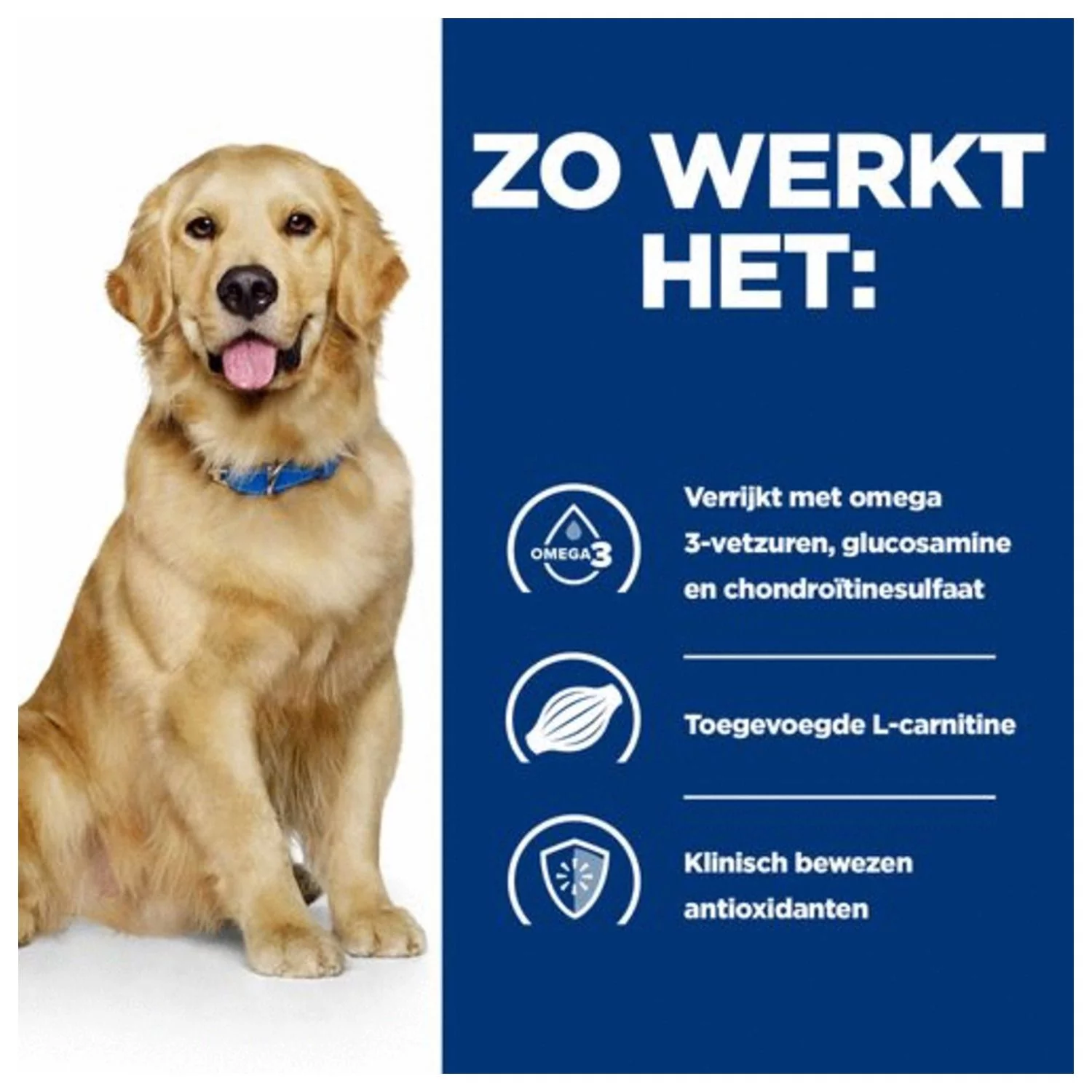 Problemen met de gewrichten van de hond kunnen erg vervelend zijn. Gelukkig is er Hill’s Prescription Diet j/d Joint Care hondenvoer. Een wetenschappelijk samengestelde voeding met kip die je hond ondersteunt bij het lopen, rennen, spelen en traplopen door pijnlijke gewrichten te verzachten en gezond kraakbeen te behouden. In slechts 21 dagen zal er een zichtbare verbetering optreden.