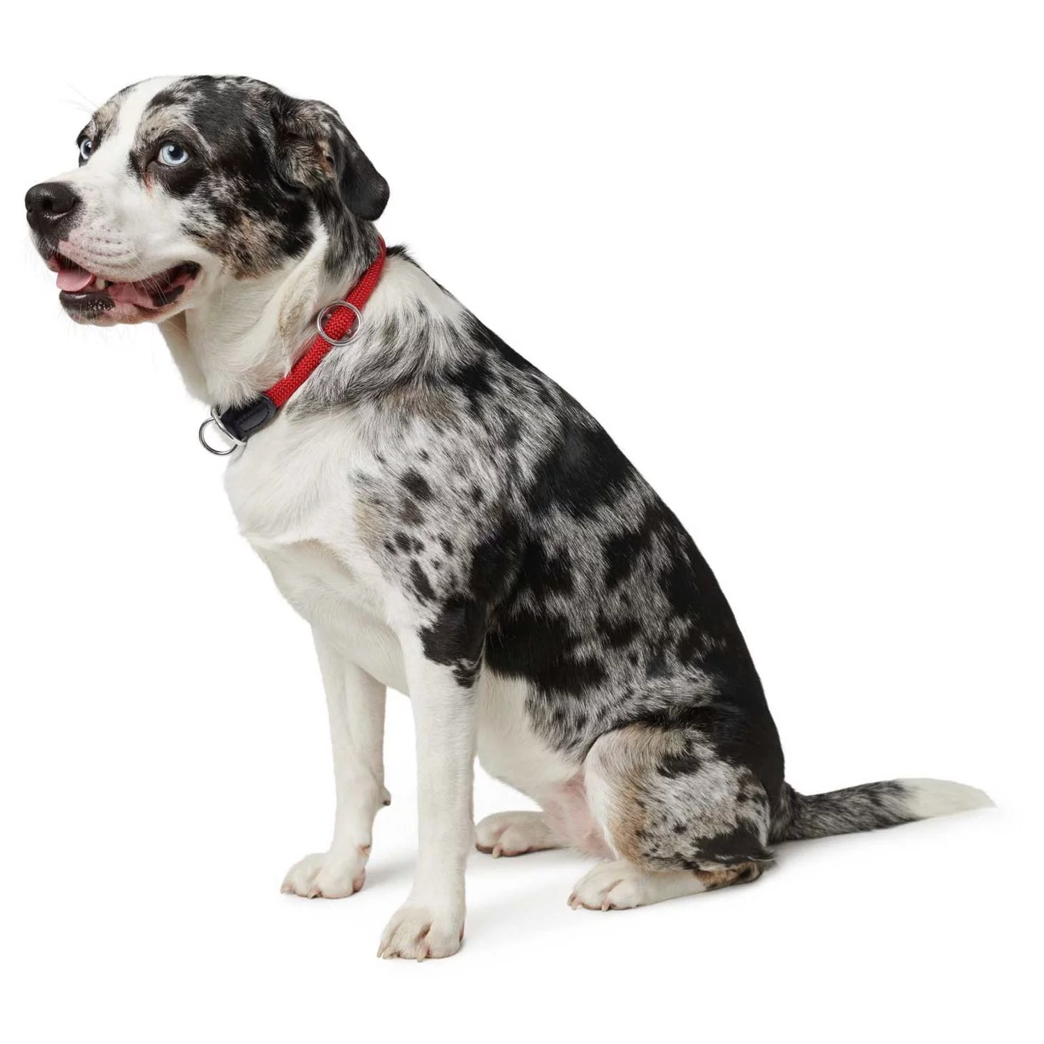 Je meet de juiste omtrek met een flexibel meetlint rond het midden van de nek van je hond. Het meetlint moet goed aansluiten, maar moet niet te strak zitten. Zorg ervoor dat er ongeveer een vingerbreedte tussen het meetlint en de nek zit. Kies vervolgens een passende nekomtrek. Valt de omtrek net aan het eind van een maat? Kies dan voor de zekerheid een maatje groter (al helemaal voor honden in de groei).