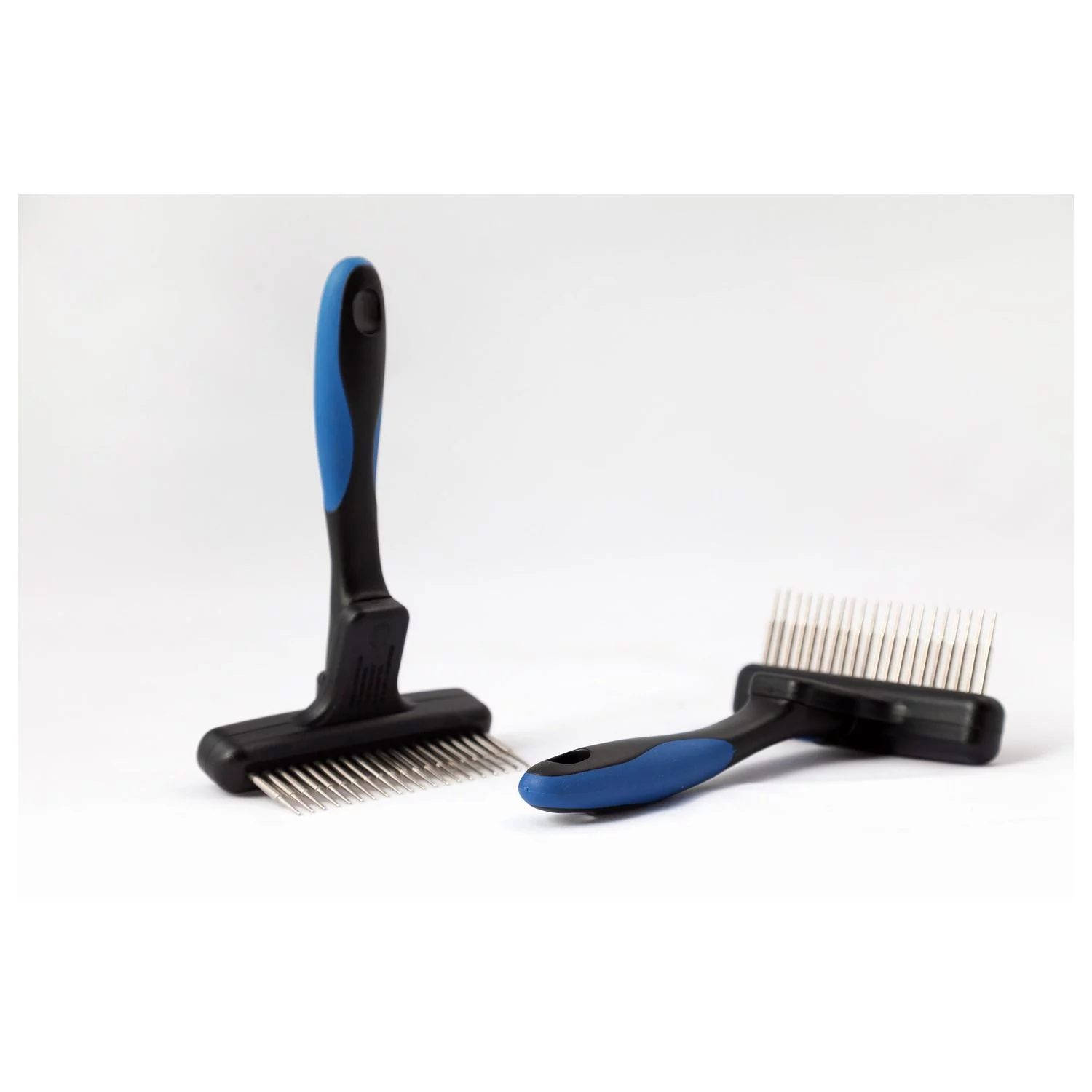 Deze hark is voorzien van een dubbele rij lange en korte verende en roterende tanden. wat het ontklitten een stuk makkelijker maakt. 9 cm met een rij van 2,2 cm en een rij van 2,7 cm tanden.