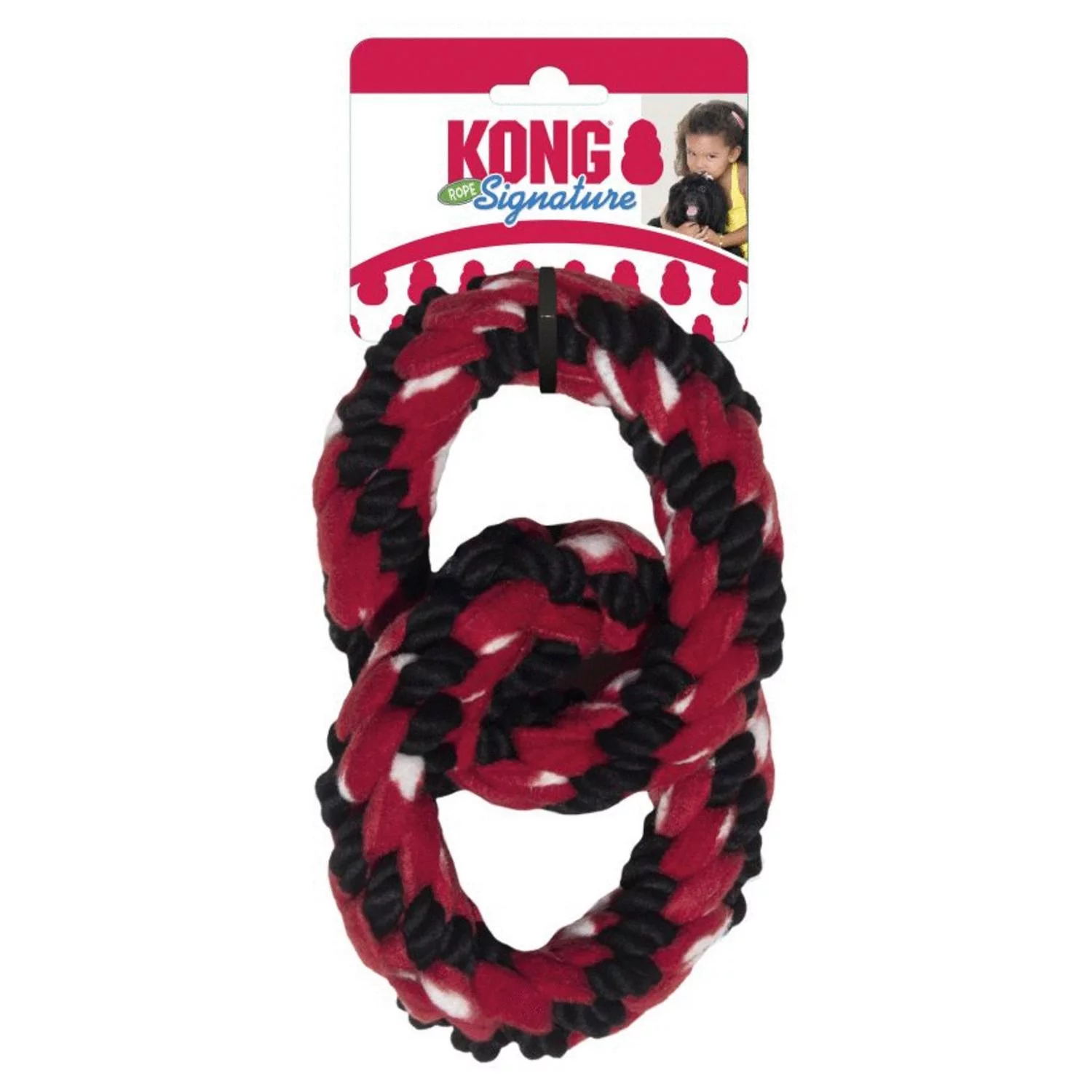 De Kong Signature Double Tug Rope verdubbelt het plezier met een unieke vlecht van katoen en fleece die zorgt voor een compromisloos rekbaar genot dat zachter is voor de mond van een hond. Het duurzame materiaal zorgt ervoor dat natuurlijk kauwgedrag keer op keer wordt beloond met als bijkomend voordeel dat het helpt bij het reinigen van de tanden. De dubbele ringen vermenigvuldigen de interactieve speeltijd door spellen van instinctief trekken nog boeiender te maken.
