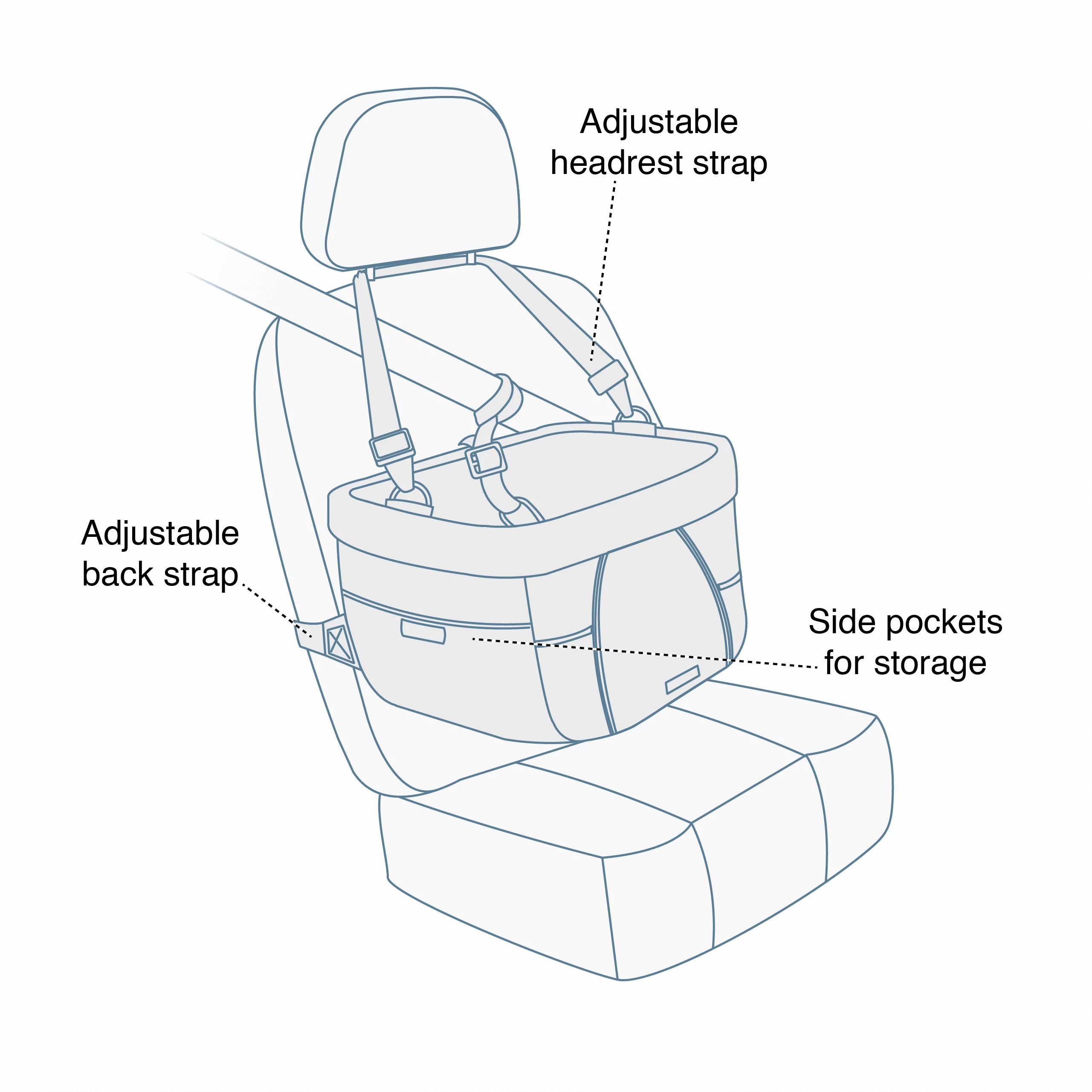 Let op: Als de stoelverhoger betrokken is geweest bij een ongeval, moet de stoelverhoger worden vervangen. Daarnaast moeten honden een tuig dragen dat is vastgemaakt aan het veiligheidsgordelsysteem van het voertuig tijdens het rijden. Maak deze dus niet vast aan een halsband om letsel te voorkomen.