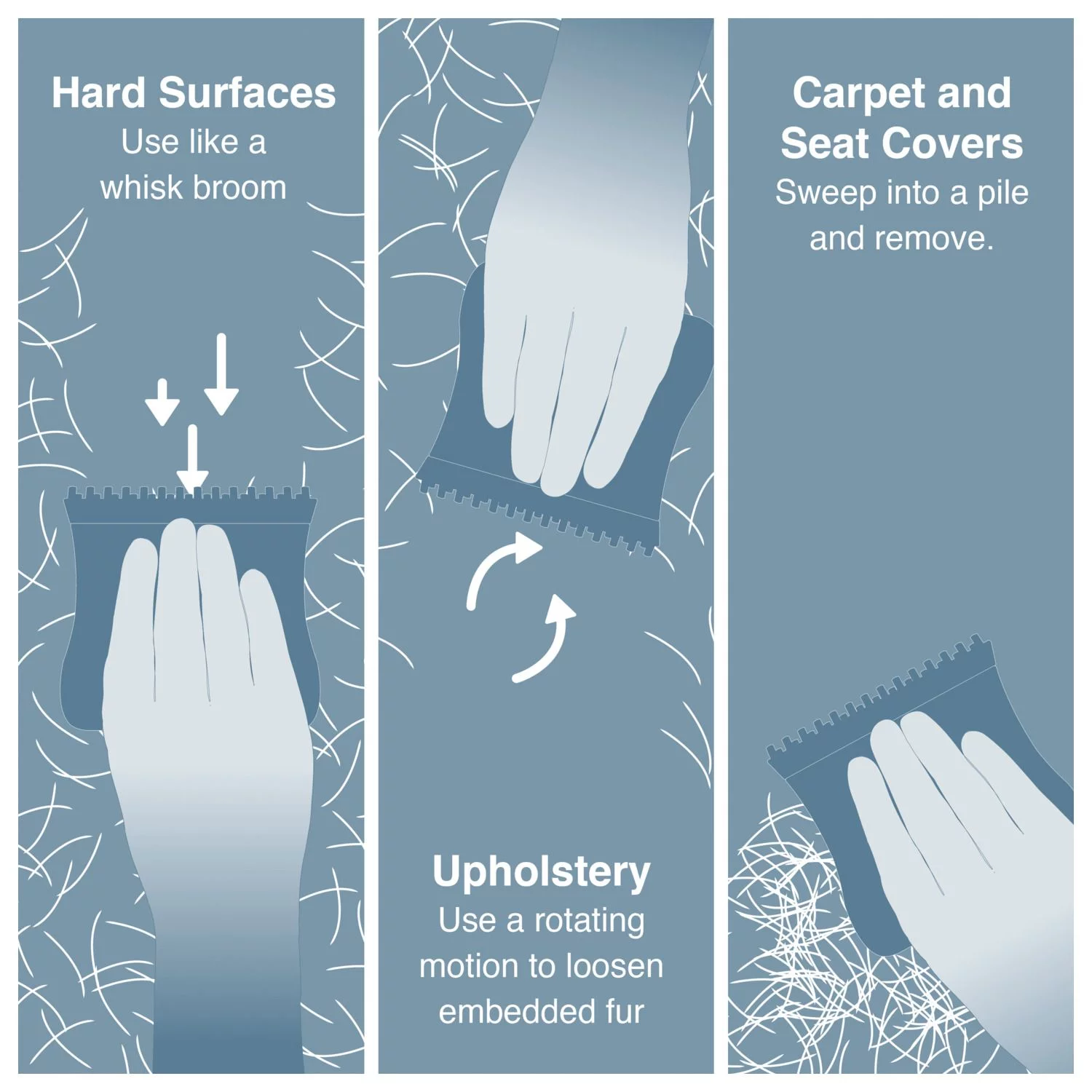 Wie harige huisdieren heeft, heeft ongetwijfeld rondslingerende haren in huis. Op de bank, in de auto. Jouw harige dier is ALTIJD bij je (de haren dan). Met de Kurgo Shed Sweeper haal je gemakkelijk losse haren van allerlei voorwerpen af.