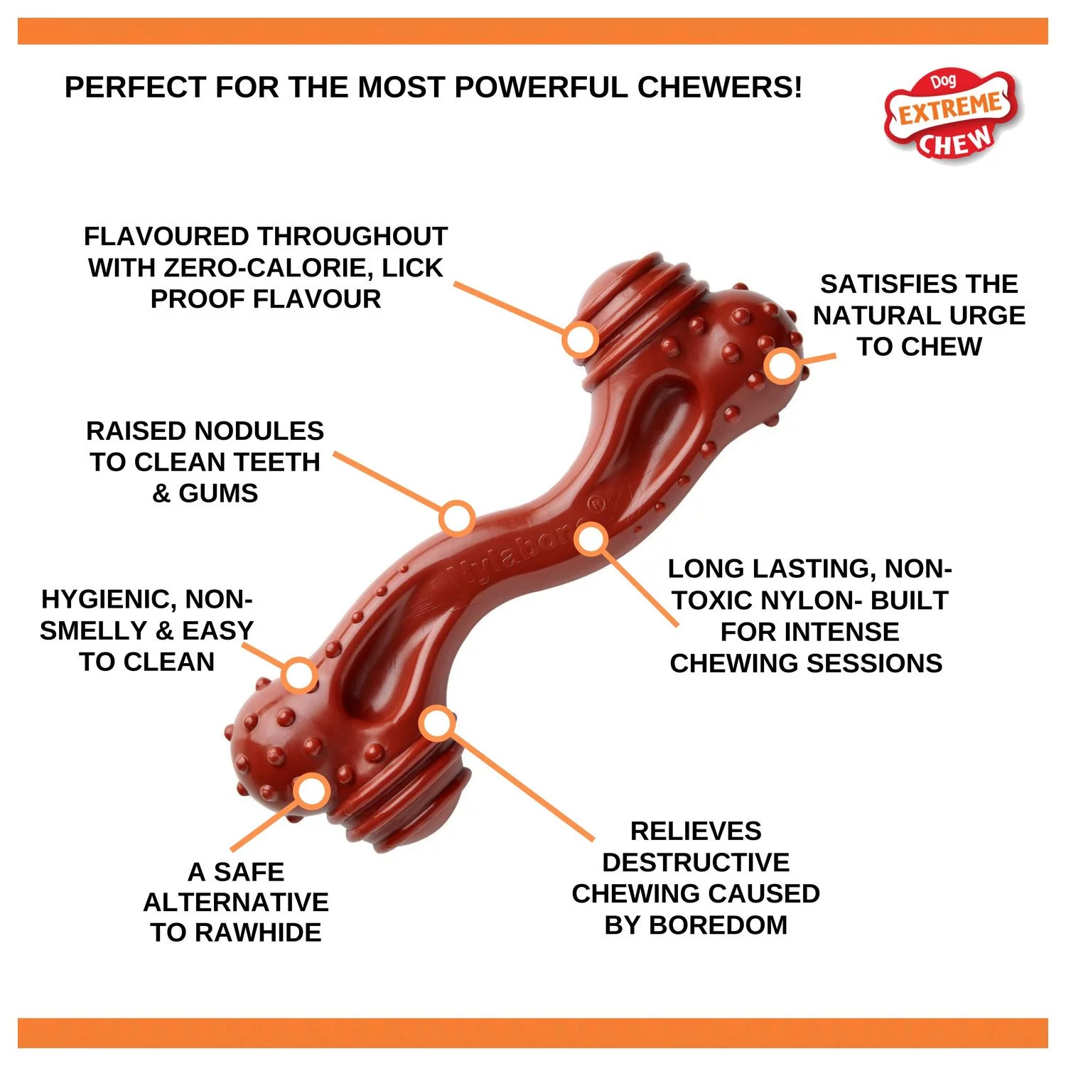 Het is de ideale combinatie tussen een speeltje en een kauwbot. De Nylabone is perfect te gebruiken bij verveling of stress maar ook om extreem kauwgedrag – zoals het kauwen aan meubels – tegen te gaan.
