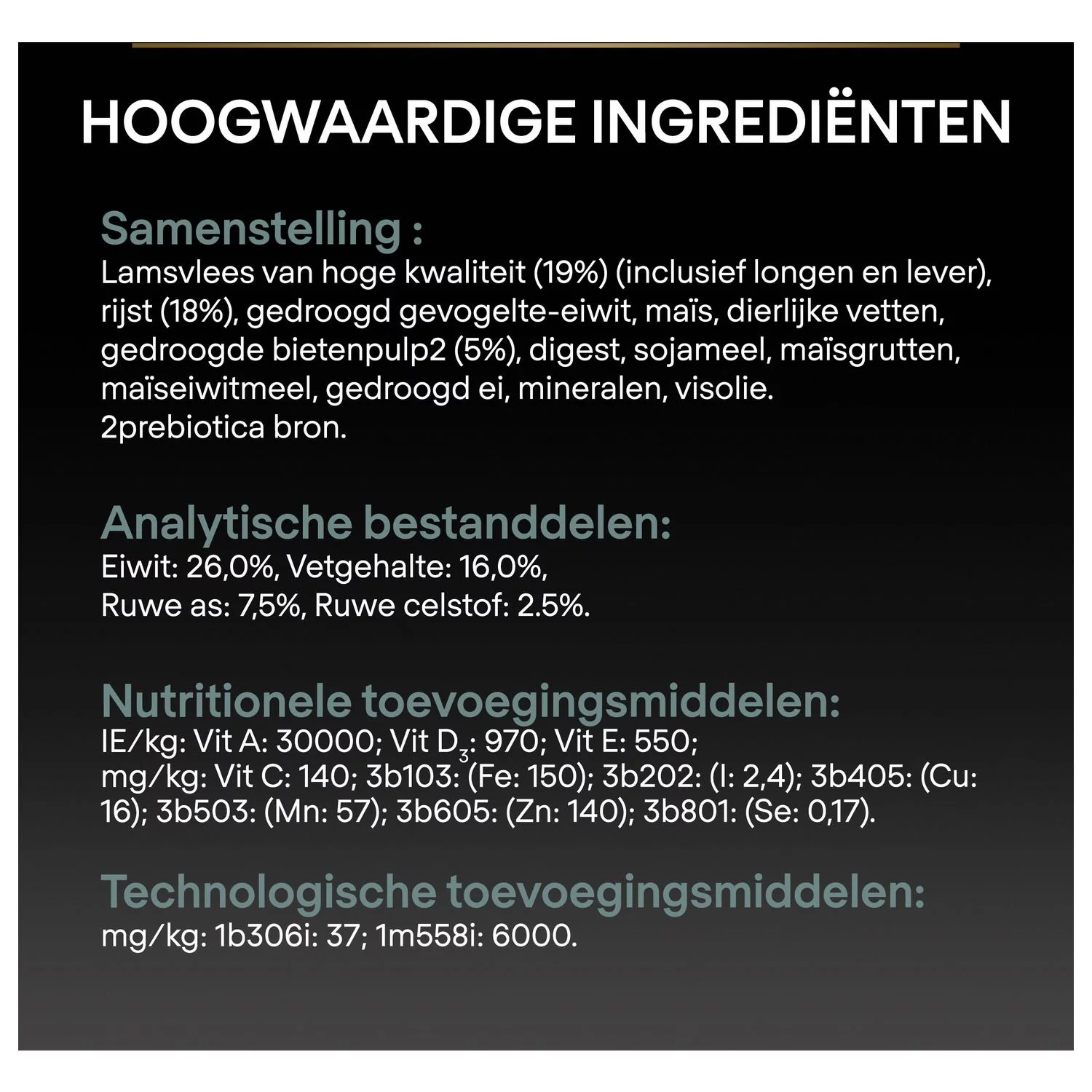 De droogvoeding bevat een geselecteerde bron van prebiotica die de darmflora ondersteunt en de spijsvertering van je hond verbetert. Het bevordert de ontlasting, waardoor je hond ook minder last heeft van verstoppingen.