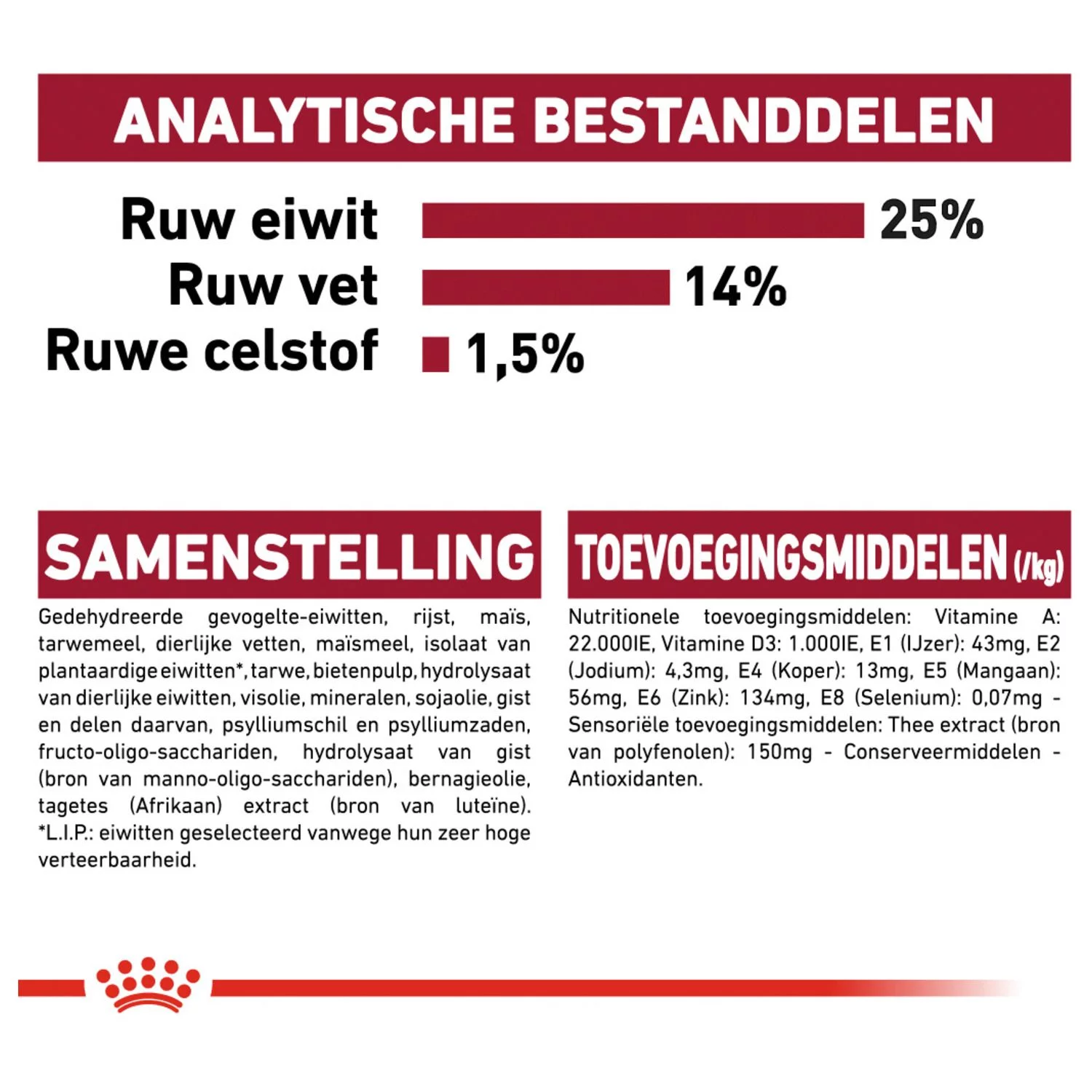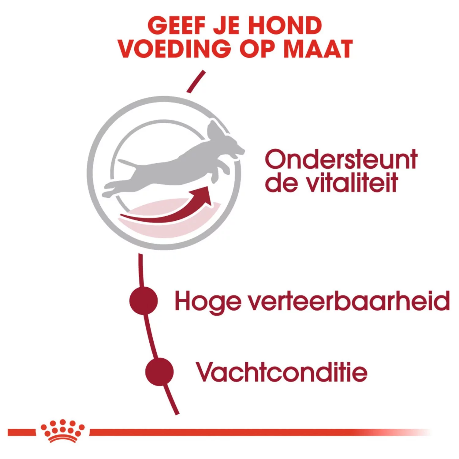 Royal Canin is toegewijd aan het leveren van voedingsoplossingen voor de behoeften van je huisdier. Alle producten ondergaan een uitgebreid kwaliteitscontroleproces om de optimale kwaliteit van de voeding te garanderen en om te voldoen aan de specifieke voedingsbehoeften en levensstijl van je hond. Als je hond Royal Canin Medium Adult 7+ eet, krijgt hij een complete en uitgebalanceerde voeding voorgeschoteld.