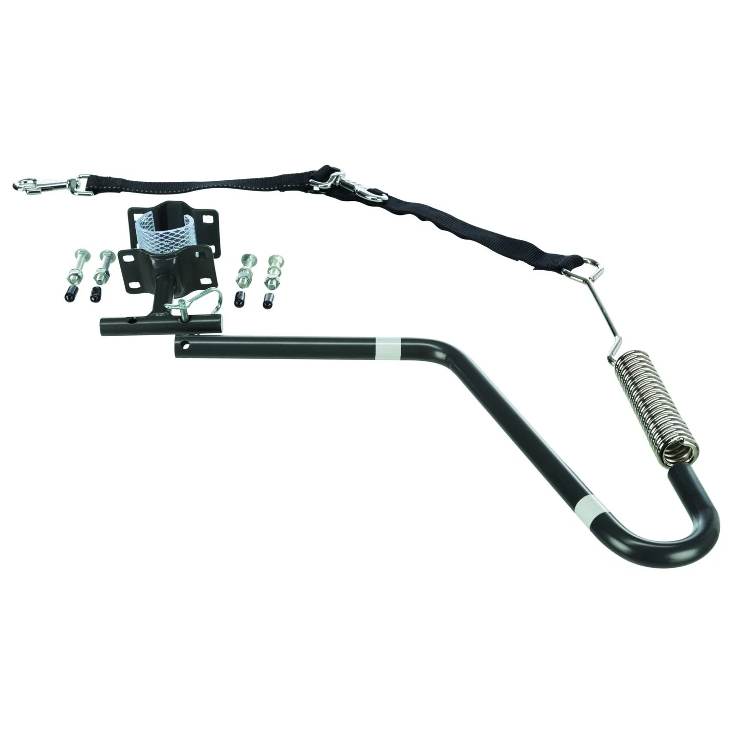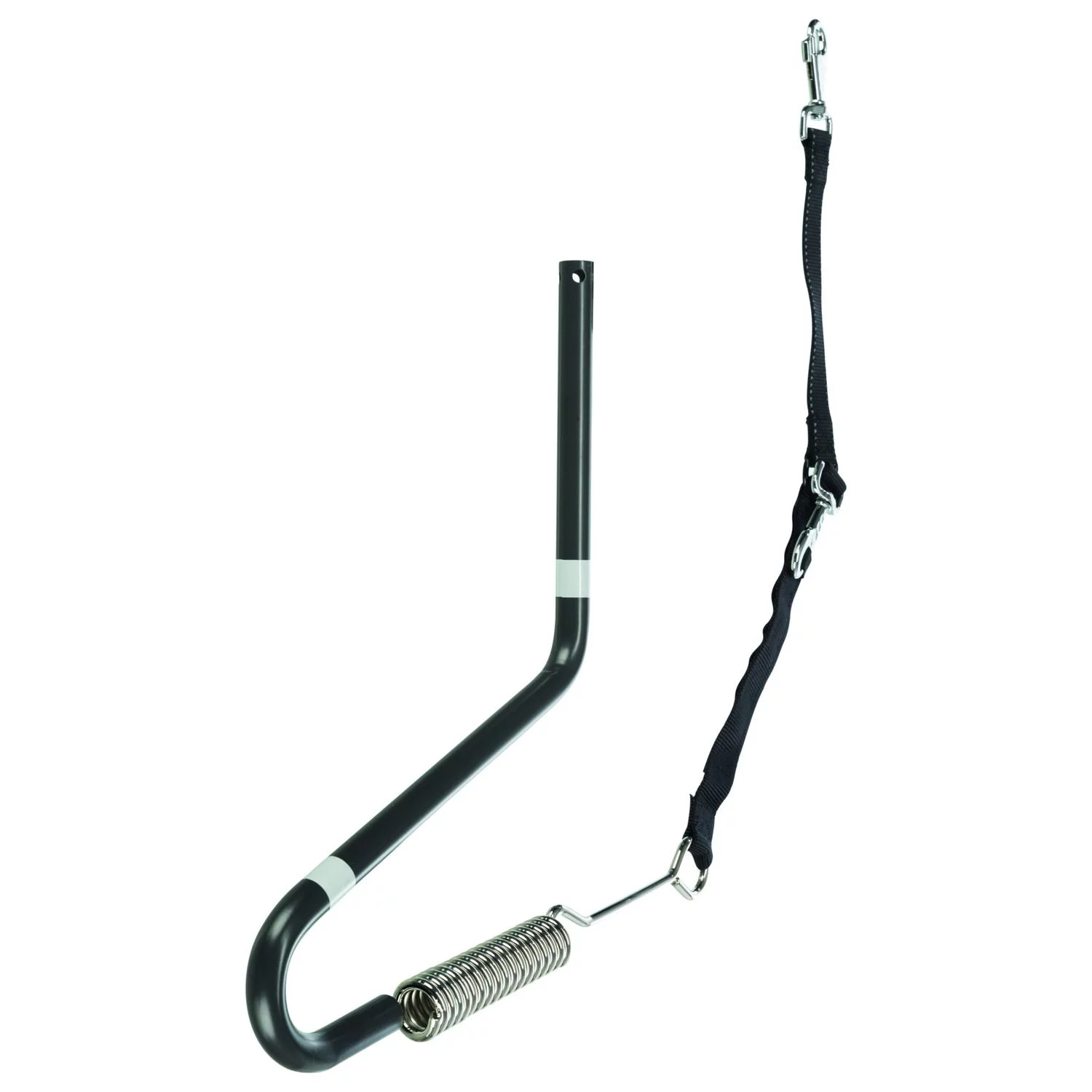 bestaat uit afstandhouder met bevestiging voor zadelpen, aanlijn-systeem en spiraalveer