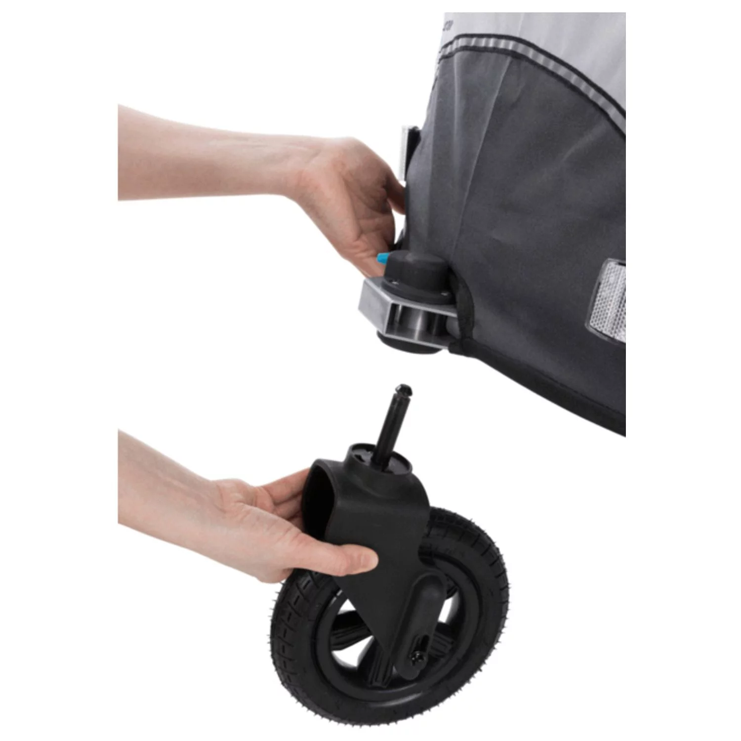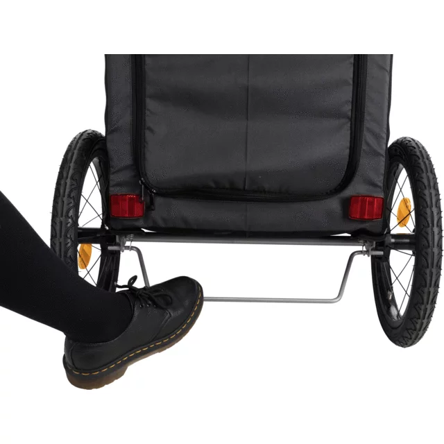 Een extra optie is om de Fietskar om te bouwen naar een buggy met de Jogging Wiel van Trixie. Dit wiel is los te koop en kan je monteren aan de voorkant van de Fietskar. De Fietskar heeft een in hoogte verstelbare duwstang om comfortabel rond te kunnen lopen. Let op: dit Jogging Wiel is niet inbegrepen en dient los te worden aangeschaft.