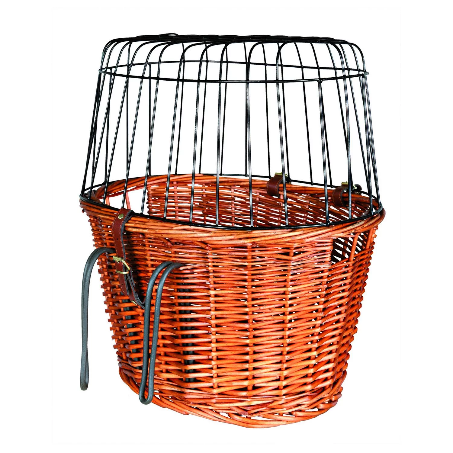 De mand zelf van deze fietsmand is gemaakt van wilgenteen. De draadkoepel bovenop heeft een kunststof coating. Je kan de mand met behulp van het mechanisme vastmaken aan je stuur. De koepel kan je met riempjes los en vast maken. Dankzij de koepel zit je hond veilig in de mand en kan deze er niet uitspringen, toch kan hij tegelijkertijd wel genieten van zijn omgeving met de wind in de haren! Door de twee uitsparingen aan de zijkant is de mand ook makkelijk op te pakken en te dragen.