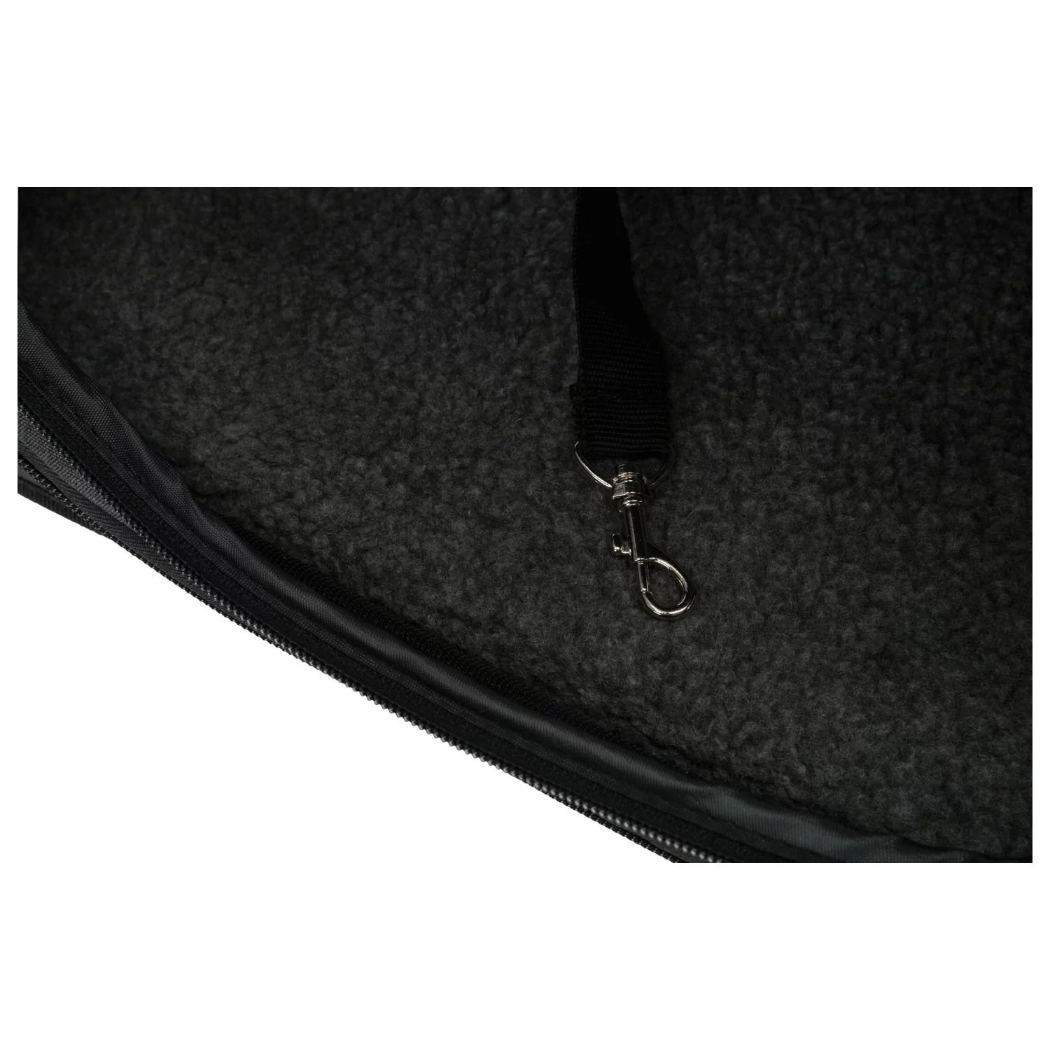De tas is te openen aan de zij- en voorkant. De geïntegreerde korthouder voorkomt dat je dier uit de tas kan springen, ondanks dat de flappen open staan. In de tas zelf zit je dier comfortabel op de uitneembare, gevoerde bodemplaat met schapenvacht look (gemaakt van polyester). In de buitenvakken kan je nog wat extra spullen stoppen om mee te nemen.