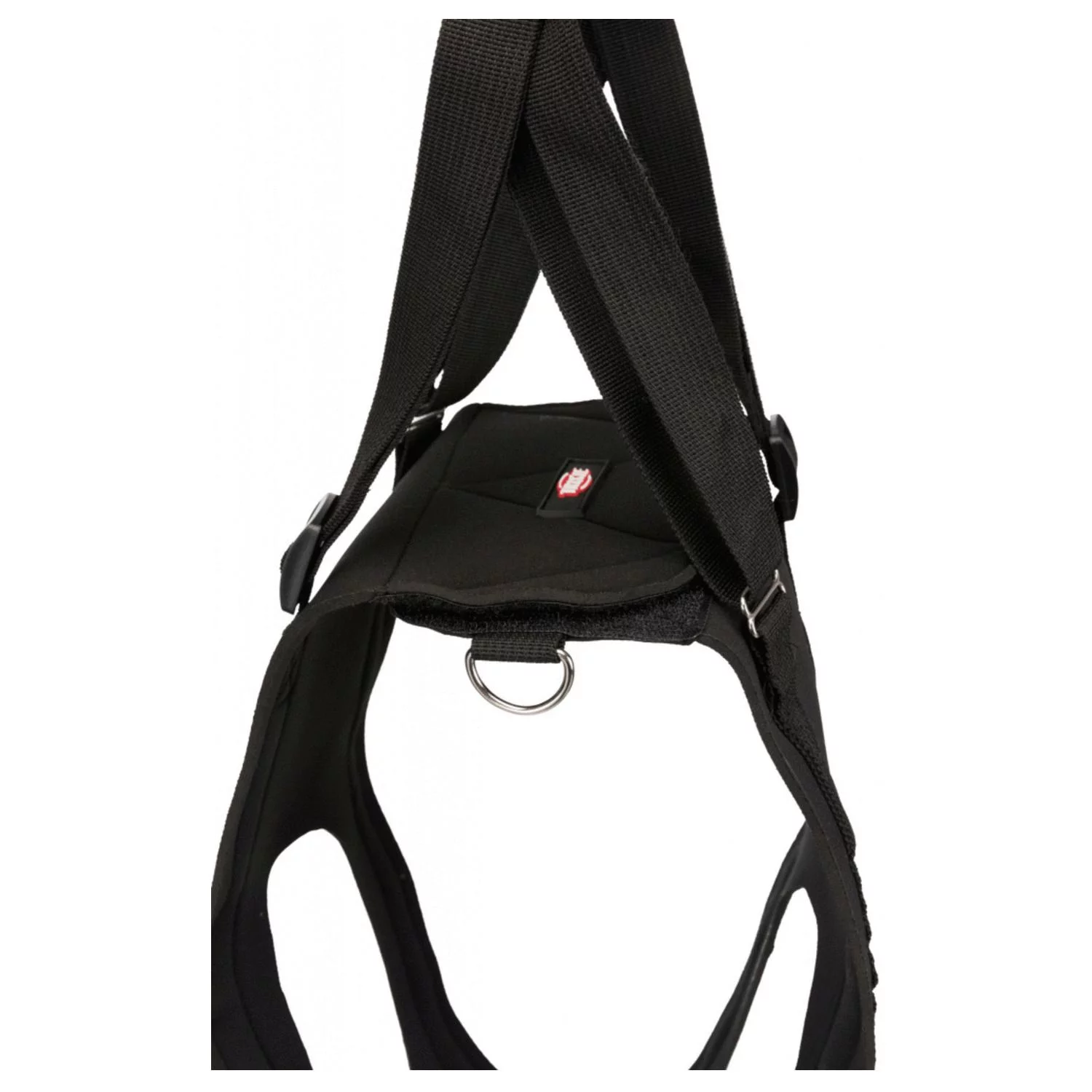 Let er bij het omdoen en het dragen op dat er, vooral bij reuen, geen lichaamsdelen afgeklemd worden of in de verdrukking komen. Om je eigen rug te ontzien, stel je het handvat dusdanig af dat je met gemak rechtop kunt staan. Dankzij de geïntegreerde D-ring is het mogelijk de loophulp aan een borsttuig te koppelen. Laat de loophulp niet langer dan noodzakelijk om en gebruik hem alleen wanneer dit noodzakelijk is.